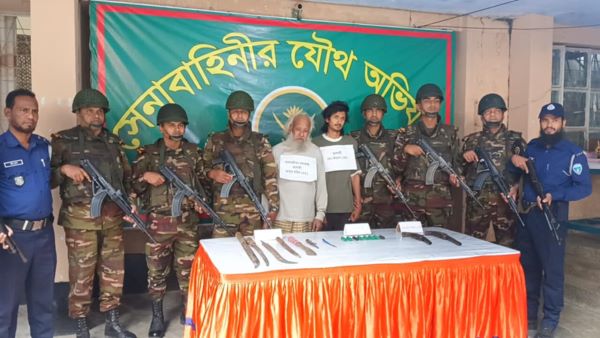 আটককৃতরা হলেন- বারশত ইউনিয়নের পশ্চিমচাল ওয়ার্ডের গোয়ালপাড়া এলাকার আবু মিয়ার ছেলে আব্দুর রহিম (৫৫) ও তার ছেলে ইমরান হোসেন (২৪)।