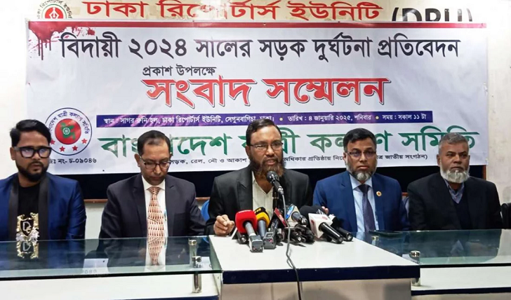 শনিবার (৪ জানুয়ারি) সকালে ঢাকা রিপোর্টার্স ইউনিটির সাগর-রুনি মিলনায়তনে বাংলাদেশ যাত্রী কল্যাণ সমিতি আয়োজিত ‘২০২৪ সালের সড়ক দুর্ঘটনার প্রতিবেদন প্রকাশ’ শীর্ষক সংবাদ সম্মেলনে এ তথ্য তুলে ধরা হয়।