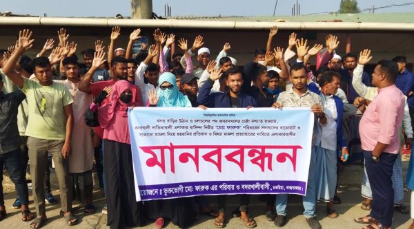 চকরিয়া (কক্সবাজার) প্রতিনিধি :কক্সবাজারের চকরিয়া উপজেলার বদরখালী ইউনিয়নের দাতিনাখালী পাড়া এলাকায় বসতবাড়ির উঠান ও চলাচল পথ জবর দখেেল ব্যর্থ হয়ে স্থানীয় মোহাম্মদ ফারুক নামের এক নিরহ পরিবারকে একেরপর এক মামলা দিয়ে হয়রানি করার অভিযোগ উঠেছে। স্থানীয় প্রভাবশালী মহলের ইন্ধনে গত চারবছর ধরে নির্যাতন থেকে মুক্তি পেতে আজ মঙ্গলবার (১৪ জানুয়ারি) বিকাল ৩টার দিকে বদরখালী ফেরীঘাট এলাকায় মানববন্ধন ও বিক্ষোভ করেছেন ভুক্তভোগী মোহাম্মদ ফারুকের পরিবার সদস্য এবং স্থানীয় এলাকাবাসী।