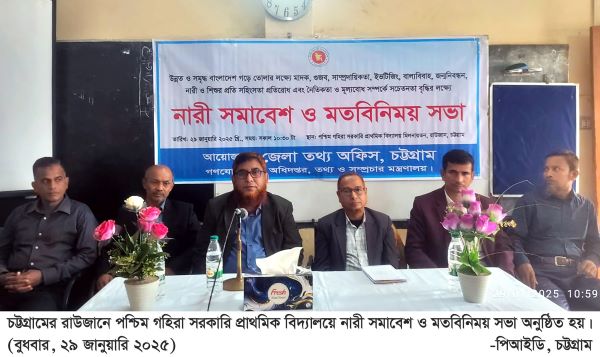 গহিরা সরকারি প্রাথমিক বিদ্যালয়ের প্রধান শিক্ষক মোঃ ইসকান্দার করিমের সভাপতিত্বে নারী সমাবেশ ও মতবিনিময় সভায় প্রধান অতিথি ছিলেন মীর হোসেন আহসানুল কবীর, পরিচালক, জেলা তথ্য অফিস, চট্টগ্রাম।