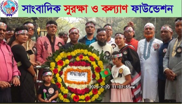 ঢাকা অফিস: মহান অমর একুশে ও আন্তর্জাতিক মাতৃভাষা দিবস উপলক্ষে ভাষা আন্দোলনের শহীদদের প্রতি গভীর শ্রদ্ধা নিবেদন করেছেন সাংবাদিক সুরক্ষা ও কল্যাণ ফাউন্ডেশনের নেতৃবৃন্দ।আজ শুক্রবার(২১ ফেব্রুয়ারি) সকাল ৯টায় সংগঠনের প্রতিষ্ঠাতা চেয়ারম্যান মোঃ দেলোয়ার হোসেনের নেতৃত্বে ঢাকার কেন্দ্রীয় শহীদ মিনারে পুষ্পস্তবক অর্পণ করে শ্রদ্ধা নিবেদন করেন সংগঠনের নেতাকর্মীরা।
