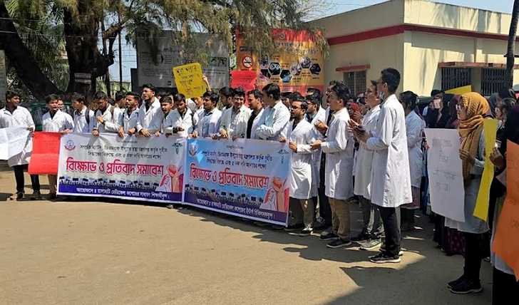 সোমবার (২৪ ফেব্রুয়ারি) সকালে মেডিকেল কলেজের প্রাঙ্গণ থেকে বিক্ষোভ মিছিল নিয়ে হাসপাতালের প্রধান ফটকে সংক্ষিপ্ত সমাবেশ অনুষ্ঠিত হয়।