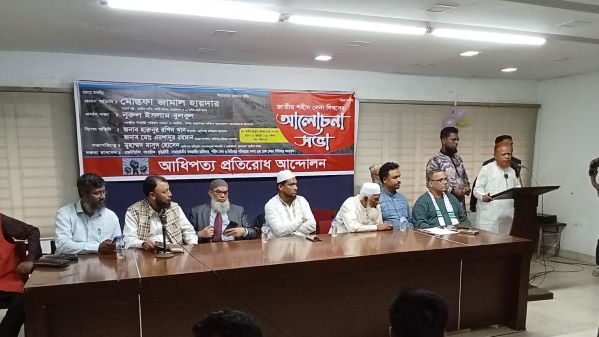 বাংলাদেশ মুসলিম সমাজের চেয়ারম্যান ও আধিপত্য প্রতিরোধ আন্দোলনের সভাপতি মাসুদ হোসেন বলেন, ১৯৪৭ এর ভারত বিভক্তির পথ থেকে আধিপত্যবাদী শক্তি ভারত পরিকল্পিতভাবে পাকিস্তানকে বিভক্ত করার ষড়যন্ত্র করে এর চূড়ান্ত সফলতা পায় তাদের দোসর শেখ মুজিবের মাধ্যমে ১৯৭১ সালে ১৬ই ডিসেম্বর। এরপর শুরু হয় স্বাধীন বাংলাদেশের উপর ভারতীয় আধিপত্যবাদের চরম থাবা। শেখ মুজিবের মৃত্যুর পর তার মেয়ে হাসিনাকে দিয়ে তারা এদেশে তাদের আধিপত্যবাদ বজায় রাখার জন্য নানানভাবে পরিকল্পনা করে। ২০০৯ সালের ২৫ ফেব্রুয়ারি বিডিআর পিলখানায় ভারতের পরিকল্পনায় শেখ হাসিনা দেশপ্রেমিক সেনা সদস্যদের হত্যা করে তার ক্ষমতাকে দীর্ঘায়িত করার লক্ষ্যে। মানবতাবিরোধী অপরাধের তথাকথিত বিচারও ভারতীয় আধিপত্যবাদের এজেন্ডা ছিল। এটিও বাস্তবায়ন করে শেখ হাসিনা জামাতের শীর্ষ পর্যায়ের নেতাদের ফাঁসির কাষ্ঠে ঝুলিয়ে হত্যা করে। ভারতের পরিকল্পনার অংশ হিসেবে এখনো পর্যন্ত জামাতের কেন্দ্রীয় নেতা এটিএম আজহারুল ইসলাম কারারুদ্ধ অবস্থায় আছে। অনতিবিলম্বে এই নেতার মুক্তির জোর দাবি জানাই।