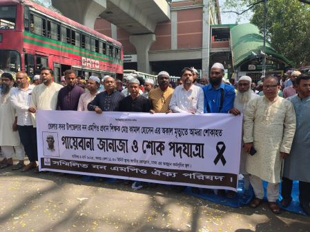 আজ তার মৃত্যু স্মরণে ঢাকা জাতীয় প্রেসক্লাবে অবস্থান কর্মসূচিস্থলে গায়েবা জানাজা ও শোক পদযাত্রা অনুষ্ঠিত হয়।
