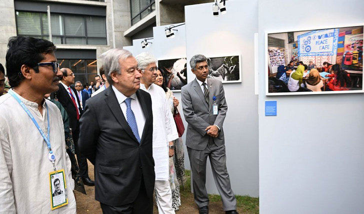 এতে বলা হয়, বাংলাদেশ-জাতিসংঘ সম্পর্কের ৫০ বছর পূর্তি উপলক্ষে জাতিসংঘ ভবন প্রাঙ্গণে আয়োজিত আলোকচিত্র প্রদর্শনী ঘুরে দেখেন গুতেরেস। তিনি জাতিসংঘের পতাকা উত্তোলন অনুষ্ঠানেও অংশ নেন। পরে তিনি জাতিসংঘের বাংলাদেশ কার্যালয়ের কর্মকর্তাদের সঙ্গে বৈঠক করেন।
