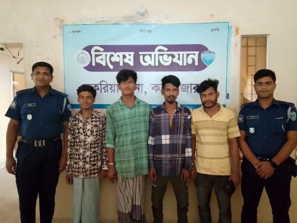 আটককৃতরা হলেন, নগরের চকবাজার ডিসি রোড়ের ১৭ নাম্বার এলাকার বাসিন্দা মৃত মনু মিয়ার পুত্র মো.তৈয়ব (২৬) চট্টগ্রাম রাহাত্তারপুল এলাকাকার বাসিন্দা মো.রফিকের পুত্র মোহাম্মদ নেজাম (২৫), কক্সবাজার সদর থানার ঝিলংজা মাস্টার পাড়া এলাকার আবু শামার পুত্র মো. শফিউল আলম (২৪), চকরিয়া পৌরসভার ভরামুহুরী এলাকার বাসিন্দা খায়ের নুর প্রকাশ হাবিবের পুত্র মোহাম্মদ রিফাত (২০) কে আটক করা হয়েছে।