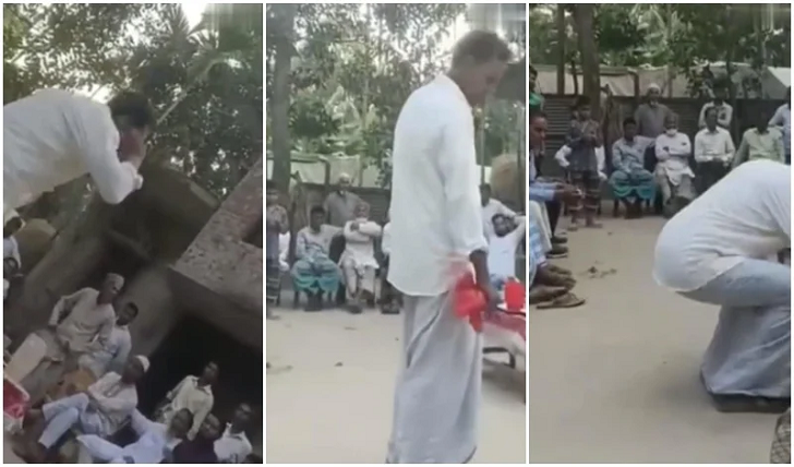 ফেসবুকে ভাইরাল হওয়া ভিডিওতে অভিযুক্ত আজিজকে বলতে শোনা যায়, আমি কান ধরে ১০ বার উঠছি আর বসছি। এরকম কাণ্ড আর কোনোদিন হবে না। আমি মাফ চাই। বৈঠকে থাকা একজন আজিজকে ইঙ্গিত করে বলন, শয়তান সওয়ার হয়েছে বল। এরপর আজিজকে কান ধরে ওঠবস করতে দেখা যায়। ভিডিওতে আরও দেখা যায়, বৈঠকে থাকা একজন বলছেন, কেউ ভিডিও করছে কিনা? আবার একই ব্যক্তি বলছেন ভিডিও করতে হবে। এর পরপর আরেকজন বলছেন, এগুলো যাতে ফেসবুকে না যায়, গেলে এলাকার অসম্মান হবে।