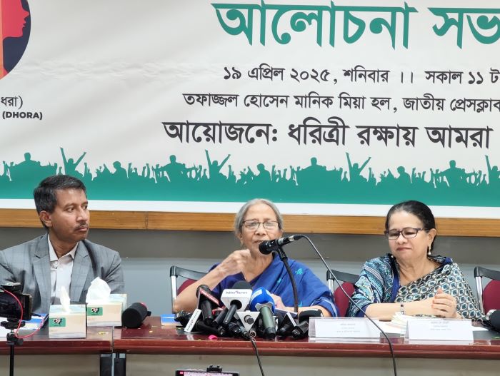 ধরিত্রী রক্ষায় আমরা (ধরা)-এর আহ্বায়ক রাশেদা কে. চৌধুরীর সভাপতিত্বে এতে বিশেষ অতিথি হিসেবে বক্তৃতা করেন কৃষি মন্ত্রণালয়ের সচিব ড. মোহাম্মদ এমদাদ উল্লাহ মিয়ান, সাবেক সচিব ও জাতীয় নদী রক্ষা কমিশনের সাবেক চেয়ারম্যান ড. মুজিবুর রহমান হাওলাদার। এতে আরো বক্তৃতা করেন বারসিকের পরিচালক পাভেল পার্থ, হাওর সংস্কৃতি অধ্যয়ন এবং গবেষণা একাডেমির প্রতিষ্ঠাতা চেয়ারম্যান সজল কান্তি সরকার, মানবাধিকার কর্মী জাকিয়া শিশির, হাওর উন্নয়ন আন্দোলনের আহ্বায়ক অ্যাডভোকেট ফরিদ উদ্দিন আহমেদ, সেন্টার ফর ন্যাচারাল রিসোর্স স্টাডিজ-এর নির্বাহী পরিচালক ড. এম মোখলেসুর রহমান। এসময় হাওর অঞ্চলের ভুক্তভোগী আহ্লাদ খান, অঞ্জনা বিশ্বাস, বোরহান উদ্দিন প্রমুখ বক্তৃতা করেন।