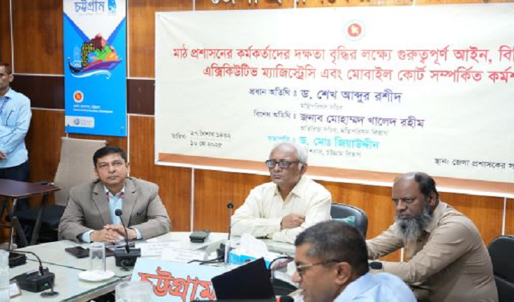 নগর প্রতিবেদক: মাঠ প্রশাসনের কর্মকর্তাদের দক্ষতা বৃদ্ধির লক্ষ্যে গুরুত্বপূর্ণ আইন, বিধি, পরিপত্র, এক্সিকিউটিভ ম্যাজিস্ট্রেসি এবং মোবাইল কোর্ট সম্পর্কিত কর্মশালা আজ শনিবার (১০ মে)দুপুরে জেলা প্রশাসকের সম্মেলন কক্ষে অনুষ্ঠিত হয়েছে। এতে সভাপতিত্ব করেন বিভাগীয় কমিশনার ড. মোঃ জিয়াউদ্দীন।