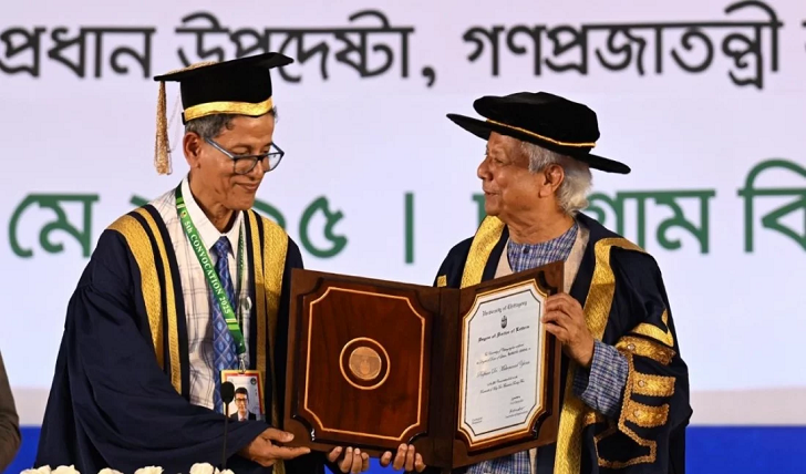 বুধবার (১৪ মে) দুপুর ২টা ১৮ মিনিটে চবির পঞ্চম সমাবর্তনে ড. ইউনূসকে এই ডিগ্রি তুলে দেন সমাবর্তনের সভাপতি ও উপাচার্য অধ্যাপক ড. মুহাম্মদ ইয়াহইয়া আখতার।