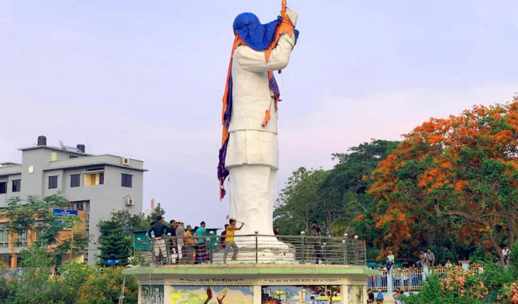 রাঙামাটি প্রতিনিধি: রাঙামাটি শহরে ভেঙে ফেলা হচ্ছে শেখ মুজিবুর রহমানের ভাস্কর্য। শুক্রবার (১৬ মে) বিকেল ৫ টা থেকে ফ্যাসিবাদ বিরোধী ছাত্র-জনতার ব্যানারে একদল লোক জেলা শহরের উপজেলা পরিষদ এলাকায় এ ভাস্কর্যটি ভাঙতে শুরু করেন।