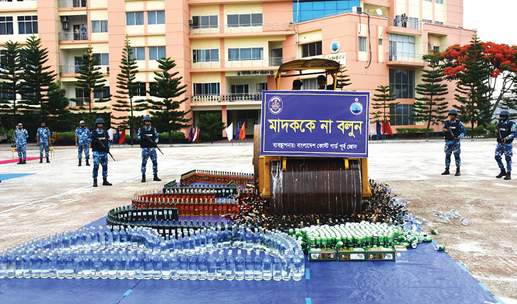 বিজ্ঞপ্তিতে জানানো হয়েছে, বাংলাদেশ কোস্ট গার্ডের বেইস চট্টগ্রামে রাখা ১ হাজার ৫৬ ক্যান হেইনকেন অরিজিনাল বিয়ার এবং ২০ লিটার টুইন ভ্যালি অলিভ অয়েলসহ ১ হাজার ১৫১ বোতল বিদেশি মদ ধ্বংস করা হয়েছে। কোস্ট গার্ড গোয়েন্দা তৎপরতা এবং সার্বক্ষণিক টহল পরিচালনার মাধ্যমে গত ফেব্রুয়ারি থেকে চার মাসে এ জোনের তত্ত্বাবধানে আনুমানিক ১১১ কোটি ৬ লাখ ৪১ হাজার টাকার ২২ লাখ ১৫ হাজার ৭৪৪ পিস ইয়াবা, ১ হাজার ১৫১ বোতল বিদেশি মদ, ১ হাজার ১৪৩ ক্যান বিয়ার, ৮৬ বোতল হুইস্কি, ৭১ বোতল ভোদকা, ৫০ লিটার বাংলা মদ, ২০ লিটার টুইন ভ্যালি অলিভ অয়েল, ৬৬ কেজি ১০০ গ্রাম গাঁজাসহ ৭৮ জন মাদক কারবারি–পাচারকারী এবং ১৪টি দেশি আগ্নেয়াস্ত্র, ২৪টি দেশি অস্ত্র, ২৩ রাউন্ড তাজা গুলি, ৯ রাউন্ড ফাঁকা গুলিসহ ৮ জন সন্ত্রাসী ও ডাকাতকে আটক করা হয়েছে।