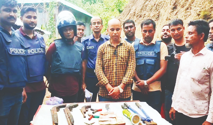 বান্দরবান প্রতিনিধি: বান্দরবানের লামায় আবুল খায়ের টোব্যাকো কোম্পানির টাকা লুটের ঘটনায় মাস্টারমাইন্ড আব্দুল করিমকে গ্রেপ্তার করা হয়েছে। এসময় তার তথ্যের ভিত্তিতে বাড়ির পাশ থেকে মাটি খুঁড়ে ৩টি আগ্নেয়াস্ত্র, ১০ রাউন্ড তাজা বুলেট, ধারালো ছুরি, লোহা কাটার ও নগদ ৭০ হাজার টাকা উদ্ধার করা হয়। গতকাল বৃহস্পতিবার বিকেলে লামা পৌরসভার সিলেটি পাড়ায় এ ঘটনাটি ঘটে।