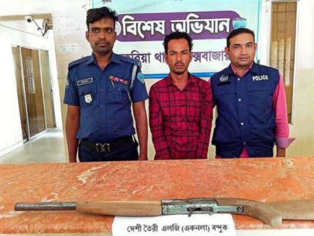 এসময় তার কাছ থেকে উদ্ধার করা হয় একটি দেশী তৈরী এলজি (একনলা) বন্দুক। সাইফুল ইসলাম ডুলাহাজারা ইউনিয়নের মালুমঘাট চা বাগান এলাকার নুরুল ইসলামের ছেলে।