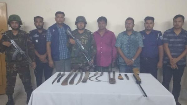 এসময় আমিনুলের বাড়িতে তল্লাশি চালিয়ে একটি একনলা বন্দুক, দুইটি দা, একটি ওয়ার কাটার, দু’টি কিরিচ, একটি চাকু ও দু’টি কাস্তে উদ্ধার করা হয়।