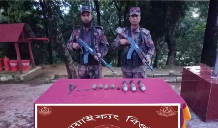 উদ্ধার হওয়া অস্ত্রের মধ্যে রয়েছে- তিনটি ৬০ মিলিমিটার মর্টার শেল, চারটি আর্জেস হ্যান্ড গ্রেনেড, দুটি বডিসেট ফিউজ, তিনটি অতিরিক্ত ফিউজ, একটি দেশীয় পিস্তল (ওয়ান শুটার গান) এবং রাইফেলের ১০ রাউন্ড গুলি।