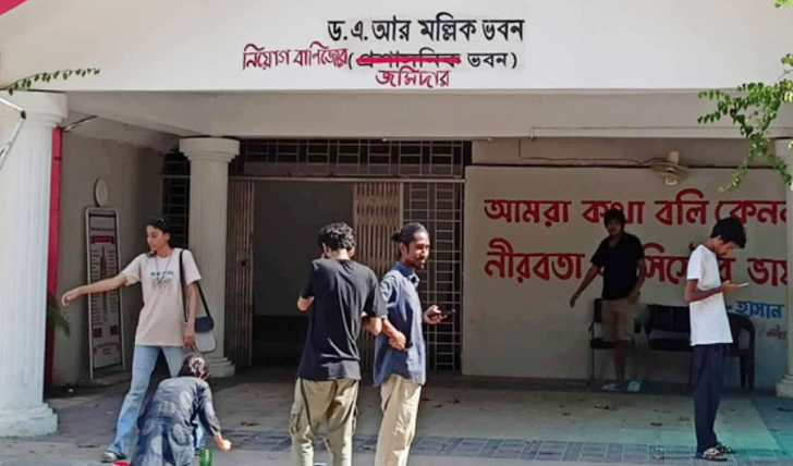 দি ক্রাইম ডেস্ক: চট্টগ্রাম বিশ্ববিদ্যালয়ের (চবি) প্রশাসনিক ভবনের নামফলক মুছে দিয়ে ‘নিয়োগ বাণিজ্যের জমিদার ভবন’ লিখে দিয়েছেন বামপন্থি কয়েকজন শিক্ষার্থী।
