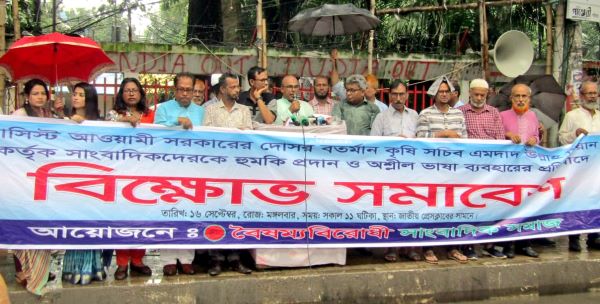 বক্তারা অভিযোগ করে বলেন, বিভিন্ন জাতীয় দৈনিকে সার আমদানি নিয়ে সরকারি অর্থ লোপাটের সংবাদ প্রকাশিত হওয়ার পর কৃষি সচিব সাংবাদিকদের প্রতি অত্যন্ত ক্ষুব্ধ হন এবং অশ্লীল ভাষায় হুমকি প্রদান করেন।