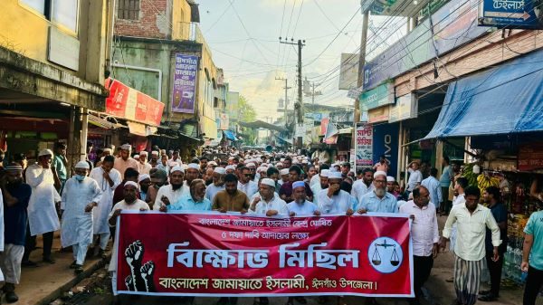 ঈদগাঁও (কক্সবাজার ) প্রতিনিধি: পিআর সহ ৫ দফা দাবি বাস্তবায়নের দাবিতে কক্সবাজারের ঈদগাঁও উপজেলা জামায়াতে ইসলামীর উদ্যোগে এক বিক্ষোভ মিছিল ও সমাবেশ অনুষ্ঠিত হয়েছে। আজ শুক্রবার (২৬ সেপ্টেম্বর) দুপুরে ঈদগাঁও বাজারের শাপলা চত্বর থেকে এ মিছিলটি শুরু হয়। যা বাজারের প্রধান সড়ক ডিসি রোড অতিক্রম করে বাস স্টেশনে গিয়ে সমাবেশে রূপ নেয়।