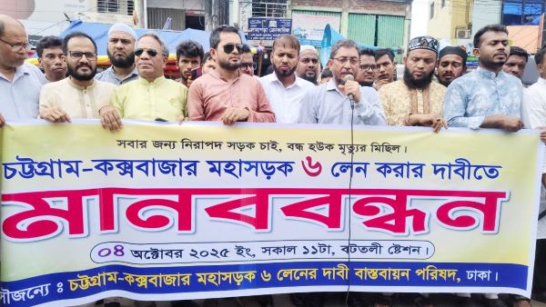 নিজস্ব প্রতিনিধি: চট্টগ্রাম-কক্সবাজার মহাসড়ক সরু ও ঝুঁকিপূর্ণ হওয়ায় প্রায় সময় ঘটছে দূর্ঘটনা, ঝরে যাচ্ছে তাজা প্রাণ। তাই এ মহাসড়ক ৬ লেনে উন্নীত করা অপরিহার্য হয়ে পড়েছে। ফলে জনসাধারণ দীর্ঘদিন থেকে এসড়ক ৬ লেন করার দাবী জানিয়ে আসছে। সংশ্লিষ্ট কর্তৃপক্ষ বার বার আশ্বাস দিলেও দৃশ্যমান কোন উদ্যোগ না থাকায় আবারও রাজপথে মানববন্ধন করছে এলাকাবাসী। আজ শনিবার (০৪ অক্টোবর) সকাল ১১টায় লোহাগাড়া উপজেলা সদরের বটতলী মোটর ষ্টেশনে এসড়ক ৬ লেনের দাবী বাস্তবায়ন পরিষদের ব্যানারে মানববন্ধন অনুষ্ঠিত হয়।
