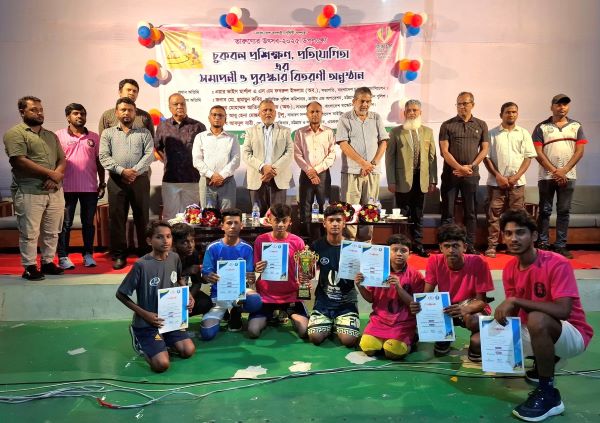 ফাইনাল খেলা শেষে প্রধান অতিথি ও বিশেষ অতিথিরা বিজয়ীদের হাতে পুরস্কার ও অংশগ্রহণকারীদের হাতে সাটিফিকেট তুলে দেন।