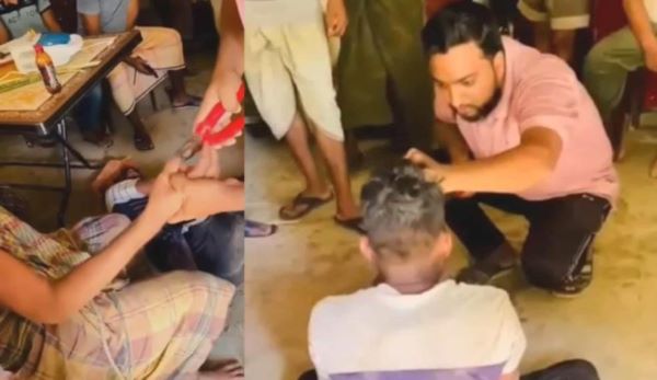 এ সময় চুরির অভিযোগটি স্বীকার না করায় স্থানীয় যুবক তাজউদ্দিন (২০) এবং স্থানীয় বাসিন্দা উহ্লা মংকে (৪৩) শারীরিকভাবে নির্যাতন করেন। প্লাস দিয়ে টেনে হাতের নখ তুলে ফেলার চেষ্টা করেন এবং প্লাস ও লাঠি দিয়ে মারধরের দৃশ্য ভিডিওতে দেখা গেছে। পরে পুলিশকে ডেকে দুজনকে চুরির মামলায় পুলিশের কাছে হস্তান্তর করে। আদালতের নির্দেশে তাদের জেলে পাঠানো হয়েছে।