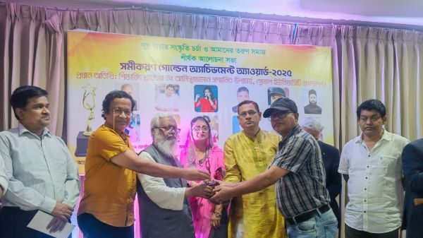 উত্তরা প্রতিনিধিঃ বিশ্বসাহিত্য কেন্দ্রে সমীকরণ সাংস্কৃতিক সংগঠন এর ব্যানারে গতকাল বুধবার(২৯ অক্টোবর) সন্ধ্যায় আয়োজন করা হয় এই পদক বিতরনী অনুষ্ঠানের। সাংস্কৃতিকসহ কয়েকটি বিষয়ে অবদান রাখায় এই এয়াচিভমেন্ট এওয়ার্ড দেওয়া হয়। ডা: রাজিউন সালমা লাবনী সভাপতিত্বে অনুষ্ঠানের উদ্ভোদন করেন সাবেক সচিব পীরজাদা শহীদুল হারুন। প্রধান অতিথি ছিলেন প্রোফেসর ড: আনিসুজ্জামান – উপাচার্য, গ্লোবাল ইউনিভার্সিটি । তিনি যোগ্যদের মধ্যে এই পদক বিতরণ করেন।