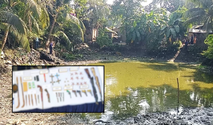 রোববার (৯ নভেম্বর) গভীর রাত ১টা থেকে শুরু হয়ে সোমবার দুপুর ২টা পর্যন্ত রাউজান উপজেলার নোয়াপাড়া ইউনিয়নের ৭ নম্বর ওয়ার্ডের চৌধুরীহাট এলাকার আব্দুর রশিদ মেম্বারের বাড়িতে এ অভিযান চালানো হয়। অভিযানের এক পর্যায়ে তার বাড়ির পুকুরে সেচ দিয়ে এসব অস্ত্র উদ্ধার করা হয়।