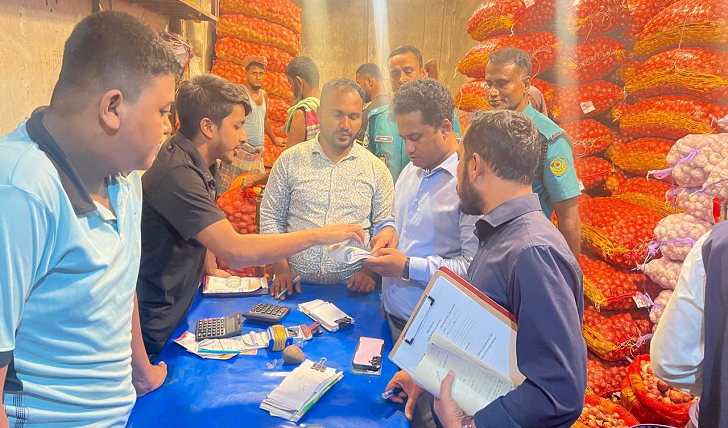 অন্যদিকে একই দিন খাতুনগঞ্জ পাইকারি বাজারে পেঁয়াজের বিভিন্ন আড়তে মনিটরিং অভিযান চালায় জেলা প্রশাসন ও কৃষি বিপণন অধিদপ্তরের যৌথ দল। দলের নেতৃত্বে ছিলেন জেলা প্রশাসনের সহকারী কমিশনার ও নির্বাহী ম্যাজিস্ট্রেট শিফাত বিনতে আরা। এ সময় আড়তগুলোর মূল্য তালিকা ও ক্রয়-বিক্রয় রশিদ যাচাই করা হয় এবং ব্যবসায়ীদের নিয়ম মেনে ব্যবসা পরিচালনার নির্দেশনা দেওয়া হয়। ক্রয় রশিদ সংরক্ষণ না করা ও লেবেলবিহীন পণ্য বিক্রির অভিযোগে ৫টি মামলা দায়ের এবং ৫ ব্যবসায়ীকে অর্থদণ্ড দেওয়া হয়।