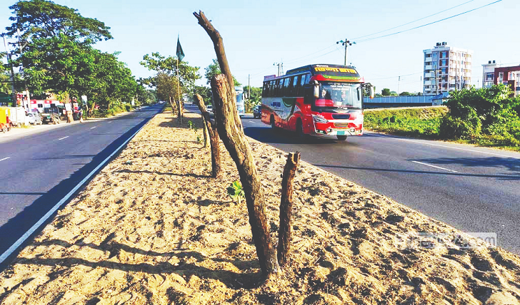সরজমিনে দেখা গেছে, কুমিল্লার সদর দক্ষিণ এলাকার বেলতলীতে ঢাকা–চট্টগ্রাম মহাসড়কের বিভাজকের গাছ কাটা হয়েছে। যার বেশিরভাগই বকুল ফুলের গাছ। এ ছাড়া সেখানে বেলী ফুল, তালসহ অন্যান্য গাছ কাটা হয়েছে। সেই জায়গায় আবার কলা, আম ও কাঁঠাল গাছ লাগানো হয়েছে।