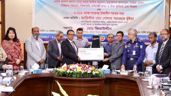 আজ বৃহস্পতিবার(২০ নভেম্বর) নগরের সার্কিট হাউস সম্মেলন কক্ষে ওয়েজ আর্নার্স কল্যাণ বোর্ড কর্তৃক আর্থিক অনুদান, মৃত্যুজনিত ক্ষতিপূরণ, বকেয়া বেতন, চিকিৎসা সহায়তা, শিক্ষাবৃত্তি, প্রতিবন্ধী ভাতা ও বীমা সুবিধার চেক বিতরণ এবং RAISE প্রকল্প সংক্রান্ত বিভাগীয় সমন্বয় সভায় প্রধান অতিথির বক্তব্যে প্রবাসী কল্যাণ ও বৈদেশিক কর্মসংস্থান মন্ত্রণালয়ের ওয়েজ আর্নাস কল্যাণ বোর্ডের মহাপরিচালক (অতিরিক্ত সচিব) ব্যারিস্টার মোঃ গোলাম সরওয়ার ভুঁইয়া এই সব কথা বলেন।