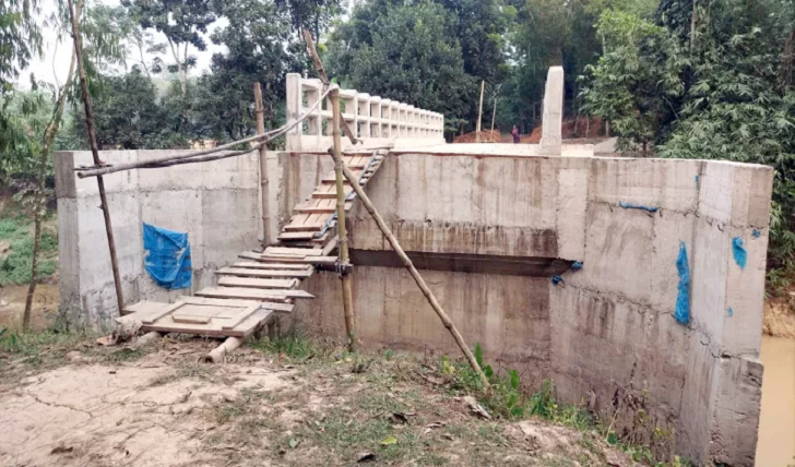 স্থানীয়দের অভিযোগ, সেতু নির্মাণের সময় দ্রুত সংযোগ সড়ক করে দেওয়ার আশ্বাস দেওয়া হয়েছিল। কিন্তু ছয় মাস পার হলেও দুই পাশে রাস্তা নির্মাণ করা হয়নি। ফলে গ্রামবাসীর প্রধান চলাচলের সড়কটি এখনও ব্যবহারের অনুপযোগী রয়ে গেছে। বাধ্য হয়ে এলাকাবাসী সেতুর ওপর ওঠানামার জন্য বাঁশ দিয়ে সাঁকো তৈরি করেছেন, যা অত্যন্ত ঝুঁকিপূর্ণ। এতে বেশ কয়েকজন আহতও হয়েছেন।