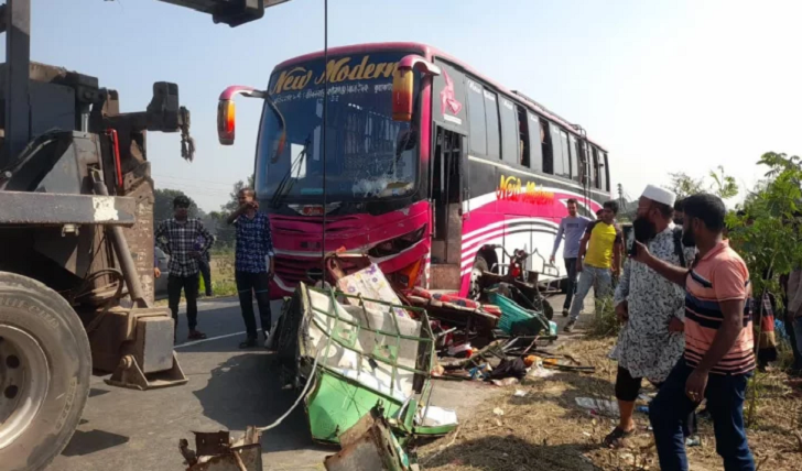 দি ক্রাইম ডেস্ক: ফরিদপুর–বরিশাল মহাসড়কের ভাঙ্গা উপজেলার কৈডুবী রেল ক্রসিংয়ের সামনে শুক্রবার (৫ ডিসেম্বর) দুপুরে একটি পরিবহন বাসের সঙ্গে থ্রি-হুইলার ইজিবাইকের মুখোমুখি সংঘর্ষ হয়। এতে ঘটনাস্থলেই একই পরিবারের ৩ জনসহ মোট ৪ জন নিহত হন এবং আরও ৪ জন গুরুতর আহত হন।