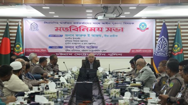 প্রেস বিজ্ঞপ্তি: চট্টগ্রাম মহানগরের আইন-শৃঙ্খলা পরিস্থিতি উন্নয়ন, নাগরিক নিরাপত্তা জোরদার এবং সমন্বিত প্রশাসনিক কার্যক্রম নিশ্চিত করার লক্ষ্যে চট্টগ্রাম মেট্রোপলিটন পুলিশের উদ্যোগে আজ শনিবার(২৭ ডিসেম্বর) বিকাল সাড়ে ৩টায় নগরের সার্কিট হাউস মিলনায়তনে মতবিনিময় সভা অনুষ্ঠিত হয়। এতে প্রধান অতিথি ছিলেন মুক্তিযুদ্ধ বিষয়ক মন্ত্রণালয় এবং দুর্যোগ ব্যবস্থাপনা ও ত্রাণ মন্ত্রণালয় এর দায়িত্বপ্রাপ্ত উপদেষ্টা ফারুক ই আজম, বীর প্রতীক।এতে সভাপতিত্ব করেন চট্টগ্রাম মেট্রোপলিটন পুলিশের কমিশনার হাসিব আজিজ।