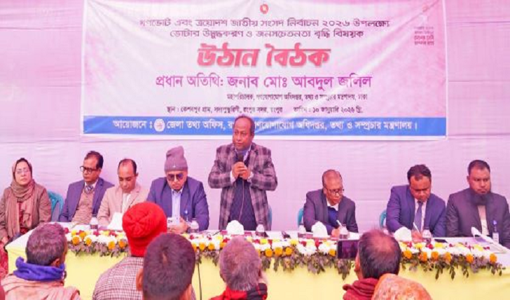 আজ শনিবার (১০ জানুয়ারি) দুপুরে রংপুর সদর উপজেলার সদ্যপুস্করনী ইউনিয়নের কেশবপুর গ্রামে গণভোট এবং ত্রয়োদশ জাতীয় সংসদ নির্বাচন, ২০২৬ উপলক্ষ্যে ভোটার উদ্বুদ্ধকরণ ও জনসচেতনতা বৃদ্ধি বিষয়ক এক উঠান বৈঠকে প্রধান অতিথির বক্তব্যে গণযোগাযোগ অধিদপ্তরের মহাপরিচালক মোঃ আবদুল জলিল এসব কথা বলেন।