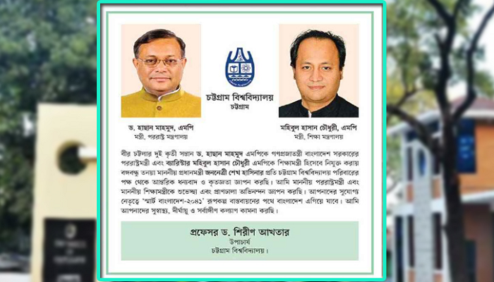 Before this, it is said in the Vice Chancellor’s congratulations and greetings printed in the newspaper that Bir Chattla’s two accomplished children. On behalf of the Chittagong University family, I would like to express my sincere thanks and gratitude to Bangabandhu’s daughter, Prime Minister Sheikh Hasina, for appointing Hasan Mahmud MP as the Foreign Minister of the People’s Republic of Bangladesh and Barrister Mahibul Hasan Chowdhury MP as the Education Minister. I extend my best wishes and hearty congratulations to the Minister of Foreign Affairs and the Minister of Education.