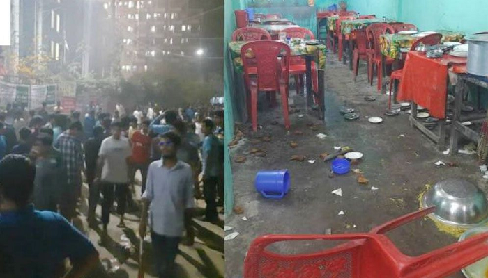 Dhaka Bureau: Students of Jatiya Kabi Kazi Nazrul Islam University clashed with local residents over allegations of serving substandard food in Iftar. This incident happened on Sunday (March 17) at midnight. The clash erupted over allegations that rotten and boiled purple items were found in iftar items bought from the Sareng Hotel, adjacent to Gate No. 2 of the university.