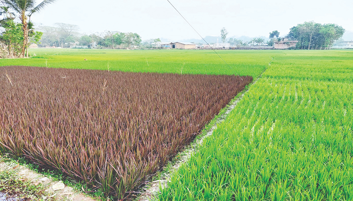 Rangunia representative: Rangunia Upazila’s Sarafbhata Union on the way to Shilak on both sides of the Grameen Pichdhala road is surrounded by greenery. Field after field has been cultivated with boro rice. Leaving the Kshetrabazar area of the road, the eyes of the passersby are caught by the purple paddy field. Among the wide green paddy fields, purple leaf rice is catching everyone’s attention.