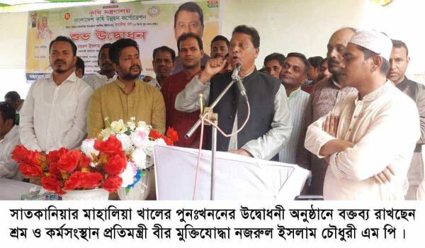Bangladesh Agricultural Development Corporation (BADC) inaugurated the 3 km re-excavation of Mahalia Canal flowing over Bajalia Union of Satkania as part of the Irrigation Improvement Project through use of surface water in Chittagong and Cox’s Bazar districts at Mahalia Govt Primary School Grounds in Bajalia Union of Satkania Upazila on Friday (March 23). State Minister of Labor and Employment Bir Muktijoddha Nazrul Islam Chowdhury made this comment in the speech of the chief guest.