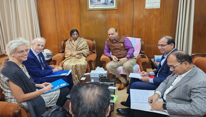 After a courtesy meeting with Sheldon Yate, the representative of the United Nations Children’s Fund of UNICEF, and the Chief of the Health Section of the United Nations Children’s Fund, Maya Vandent, the Minister of Health, said this at the Secretariat of the Health Minister’s office this morning. Samant Lal Sen. Secretary of Health Education and Family Welfare Department Azizur Rahman, Director General of Health Education Department Professor Tito Mia, Acting Secretary of Health Services Department Muhammad Wahiduzzaman (Additional Secretary), and Joint Secretary (Global Health) Mamunur Rahman of the Healthcare Department were present during the meeting with the Health Minister.