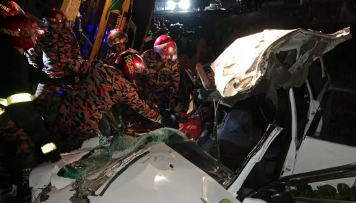 He said that the private car with a person and others returned from abroad left Dhaka at night. On reaching the place called Haritala around 1.30 am, there was a head-on collision with a Dhaka-bound truck. The private car was overturned.