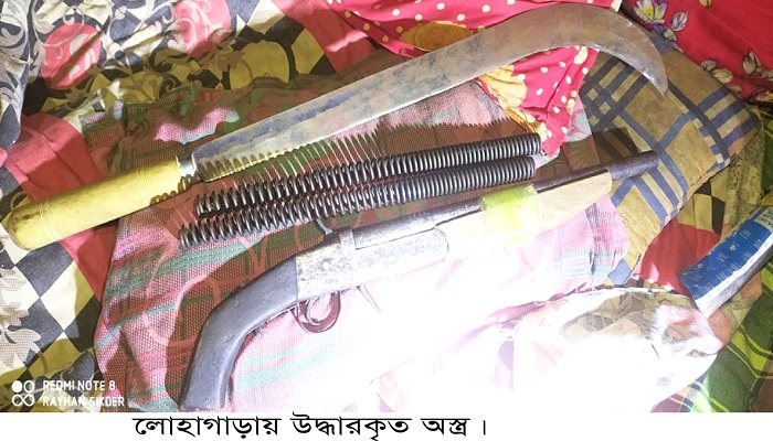 Own correspondent: 1 country-made weapon, 1 sharp blade, and weapon-making equipment were recovered in Lohagara, South Chittagong, during the police operation. These weapons were recovered from Rifat’s house in the Telibila area of the Charamba Union of the Upazila at around 4 p.m. on Sunday, May 5. The weapons are found on Rifat’s bed. Rashedul Islam, officer-in-charge of Lohagara police station, led the police operation. There were other police officers and constables at the police station. It is learned that Charamba Union Awami League President and former Chairman Master Shafiqur Rahman, Awami League General Secretary Ashab Uddin, and other leaders were with the raid.