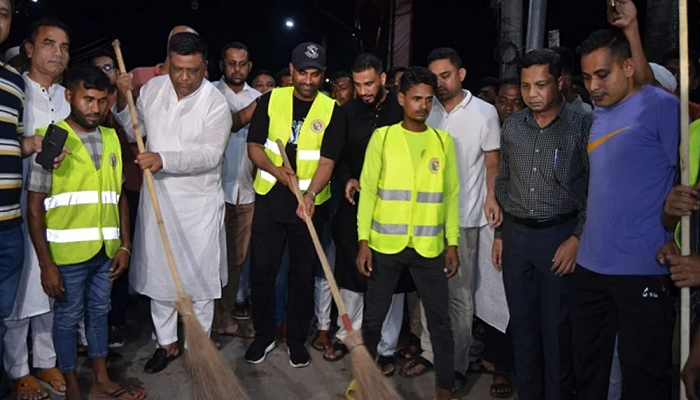 On Friday, May 10, around 10:30 p.m., he participated in the cleanliness drive from Nagar Bhavan to Surma Tir in front of Sylhet Circuit House. Sisik said that Tamim Iqbal participated in this program to encourage the city residents to do cleanliness work.