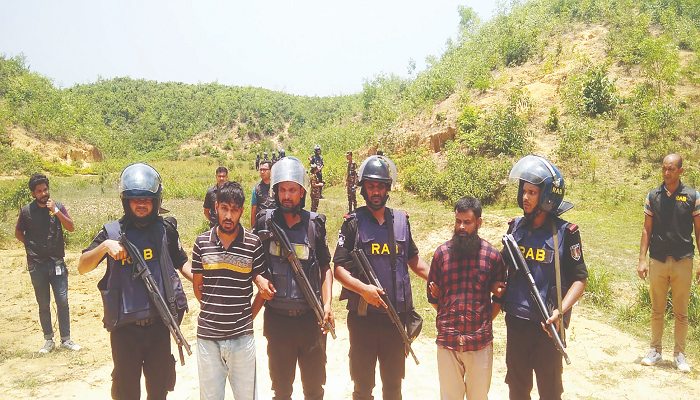 Commander Arafat Islam, director of RAB’s law and media wing, gave a press briefing on the operation. He said that Arsa became weak due to RAB’s continuous operations. So they are trying to re-energize. As a part of this, RAB got information that many members of ARSA were sent from Myanmar to Rohingya camps. Their aim is to sabotage the camps. In view of this information, RAB-15 starts the operation and learns that Master Salim is currently leading as the head of ARSA in Bangladesh. Under his leadership, Arsa is creating terror in Rohingya camps by carrying out various criminal activities, including re-killing and looting arms and ammunition from Myanmar. After learning about the matter, raids were conducted on Arsa’s hideout at Lal Pahar, adjacent to the Rohingya camp in Ukhia. In the campaign, one of the main coordinators and commanders of Arsa in Bangladesh. RAB was able to arrest two Arsa terrorists, including Shahnur Prakash Master Salim. During this time, 5 grenades, 3 rifle grenades, 10 locally made hand grenades, 13 cocktails, 1 foreign revolver, 9 rounds of nine-mm pistol ammunition, 1 LG, and 3 12-bore cartridges were recovered from them.
