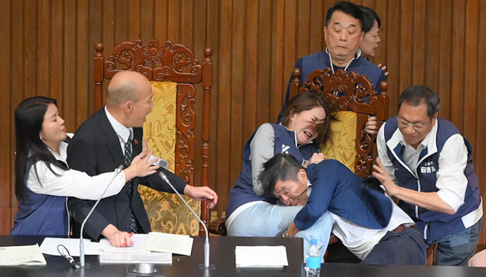 Video of the incident showed the lawmakers riding around the Speaker’s seat. Some jumped on the table and dragged colleagues to the floor. After a while, the situation calmed down, but fighting started again in the afternoon.