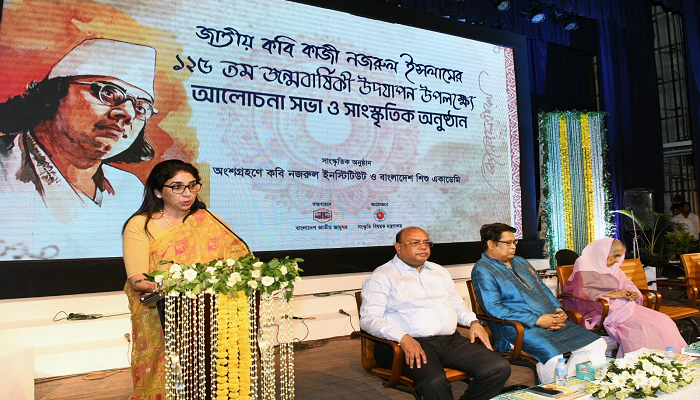 The state minister said this in the presidential address on the occasion of the 125th birth anniversary of national poet Nazrul Islam at the Bangamata Sheikh Fazilatun Necha Mujib Auditorium of the National Museum at Shahbagh in the capital on May 25. Deputy Leader of the Parliament of Bangladesh, Matia Chowdhury MP, was the chief guest on the occasion.