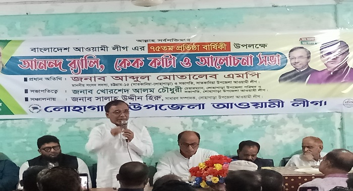 Correspondent: On the occasion of the 75th founding anniversary of the Bangladesh Awami League, a discussion meeting was held in Lohagara on Saturday, June 22, at 11 a.m. Abdul Motaleb CIP, Member of Parliament and Satkania Upazila Awami League President, emphasized the unity of party leaders and workers in the meeting organized at the Lohagara Upazila Awami League office.