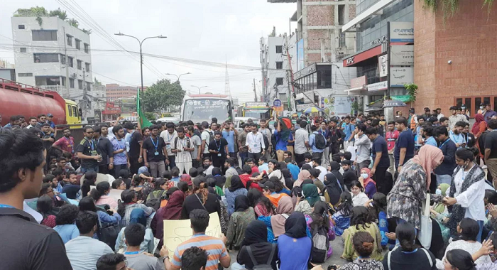 Assistant Commissioner of Badda Zone of Dhaka Metropolitan Police Rajan Kumar Saha said that the students are protesting by blocking one side of the road. They started the protest at 10:30 in the morning.