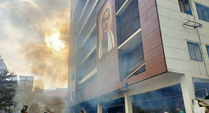 The Crime Desk: Miscreants set fire to the ninth-floor office of the Awami League and Comilla Club in Comilla. Besides vandalizing Comilla’s historical Bir Chandra Public Library, local people also vandalized Bangabandhu’s mural in front of the officials and employees of the Board of Education.