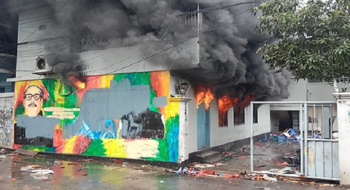 After the news of Sheikh Hasina’s resignation reached Jhalkathi, angry students attacked and set fire to the residence of 14-party coordinator Awami League MP Amir Hossain Amur on Ronals Road on Monday afternoon.